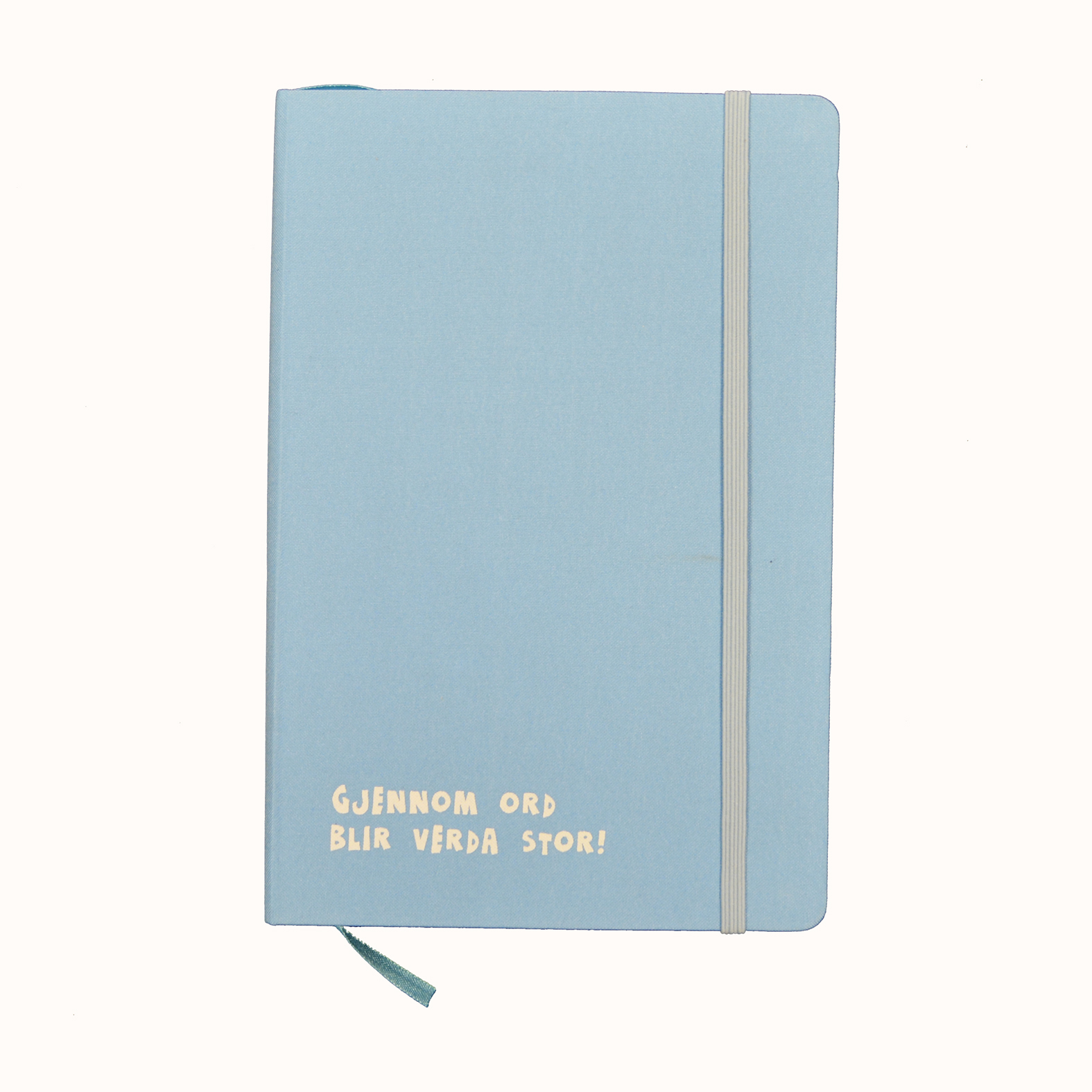 Linjert notatbok på 80 sider. Med logo og slagordet «Gjennom ord blir verda stor».